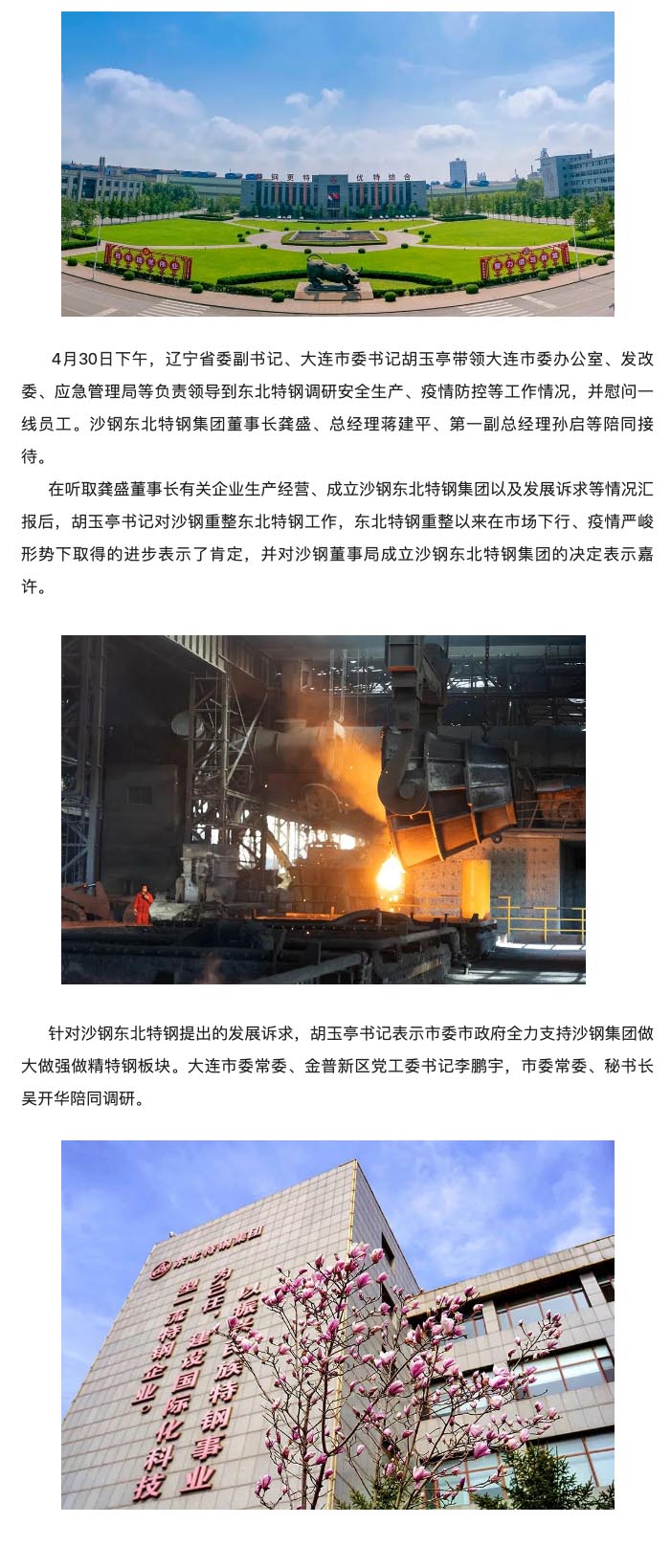 遼寧省委副書記、大連市委書記胡玉亭帶隊(duì)到東北特鋼視察調(diào)研